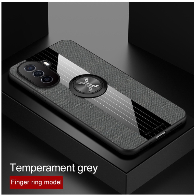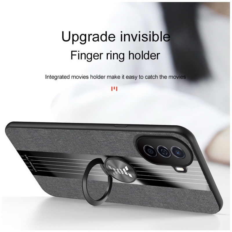 หยิบลงตะกร้า | เคส Huawei Nova Y70 #เคสฝาหลังเคลือบผ้าเนื้อมีแหวนสวมนิ้ว TPU ไฮบริด+อะคริลิ + แหวนโลหะ [ในตัวแผ่นโลหะแม่เหล็ก] Fashion Woven Cloth Casing Finger Ring Holder Back Case สีเทา