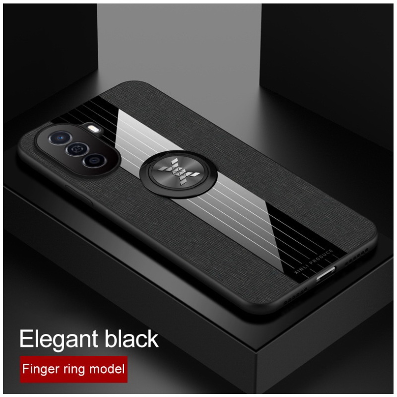 | เคส Huawei Nova Y70 #เคสฝาหลังเคลือบผ้าเนื้อมีแหวนสวมนิ้ว TPU ไฮบริด+อะคริลิ + แหวนโลหะ [ในตัวแผ่นโลหะแม่เหล็ก] Fashion Woven Cloth Casing Finger Ring Holder Back Case สีดำ