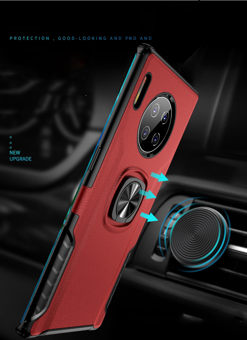 หยิบลงตะกร้า | Case Huawei Mate 30 Pro #เคสฝาหลังพลาสติกมีแหวนสวมนิ้ว [แผ่นโลหะแม่เหล็กในตัว] PC + TPU Hybrid Back สีแดง