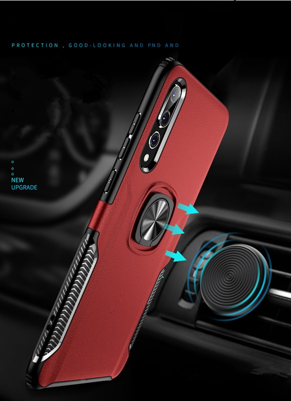 หยิบลงตะกร้า | Case Huawei P20 #เคสฝาหลังพลาสติกมีแหวนสวมนิ้ว [แผ่นโลหะแม่เหล็กในตัว] PC + TPU Hybrid Back สีแดง