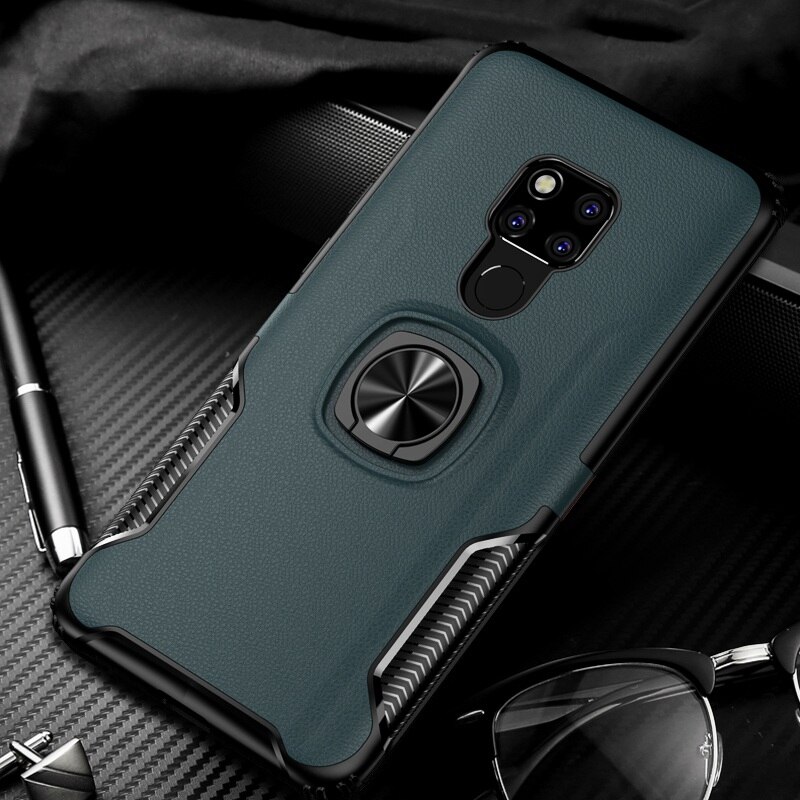 หยิบลงตะกร้า | เคส Huawei Mate 20 X #เคสฝาหลังพลาสติกมีแหวนสวมนิ้ว [แผ่นโลหะแม่เหล็กในตัว] PC + TPU Hybrid Back สีเขียว