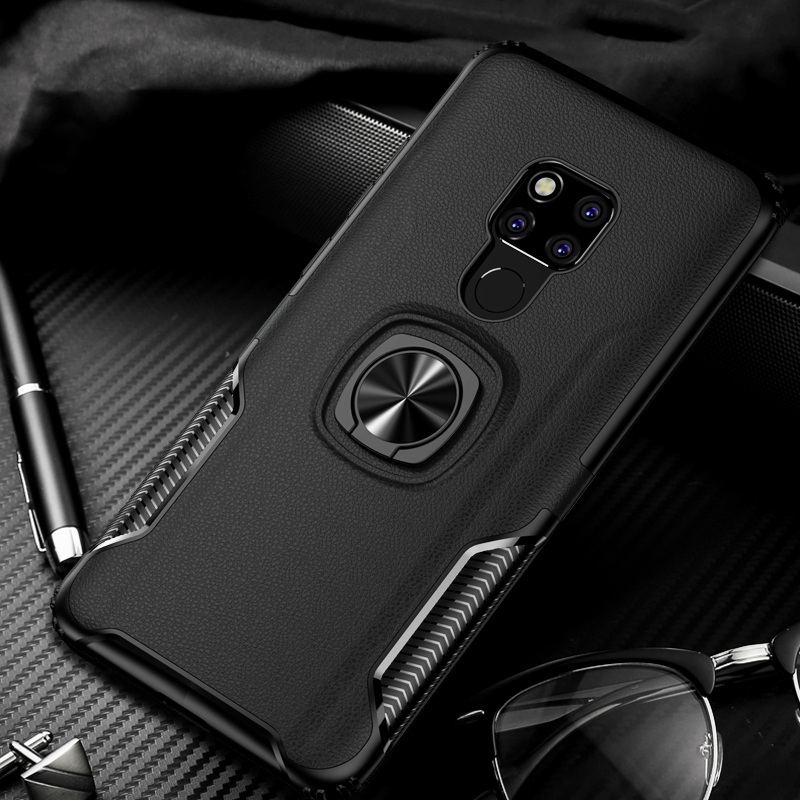 | เคส Huawei Mate 20 X #เคสฝาหลังพลาสติกมีแหวนสวมนิ้ว [แผ่นโลหะแม่เหล็กในตัว] PC + TPU Hybrid Back สีดำ