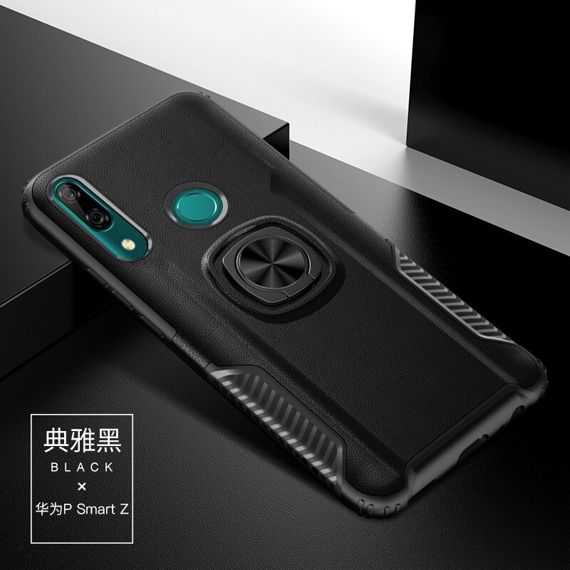 | เคส Huawei Y9 Prime 2019 #เคสฝาหลังพลาสติกมีแหวนสวมนิ้ว [แผ่นโลหะแม่เหล็กในตัว] PC + TPU Hybrid Back สีดำ