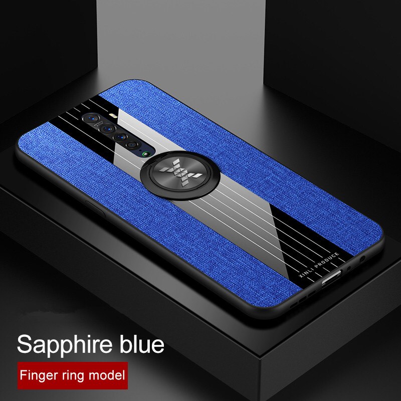 | Case OPPO Reno 2 #เคสฝาหลังเคลือบผ้าเนื้อมีแหวนสวมนิ้ว TPU ไฮบริด+อะคริลิ + แหวนโลหะ [ในตัวแผ่นโลหะแม่เหล็ก] สีฟ้า