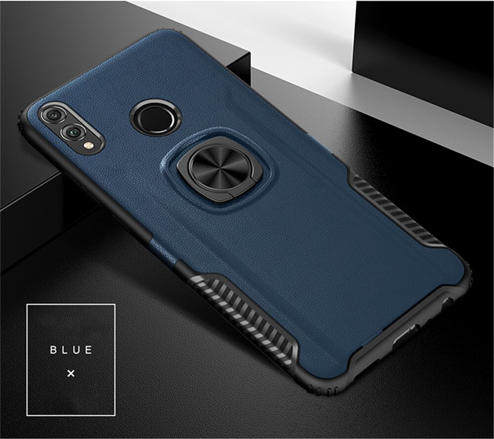 | Case Huawei Y7 2019 #เคสฝาหลังพลาสติกมีแหวนสวมนิ้ว [แผ่นโลหะแม่เหล็กในตัว] PC + TPU Hybrid Back สีฟ้า
