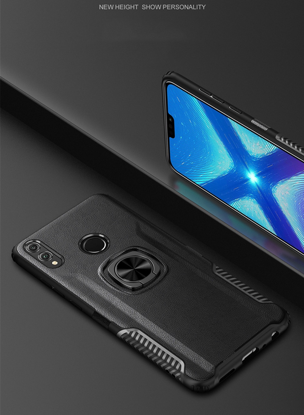 | Case Huawei Y7 2019 #เคสฝาหลังพลาสติกมีแหวนสวมนิ้ว [แผ่นโลหะแม่เหล็กในตัว] PC + TPU Hybrid Back สีดำ